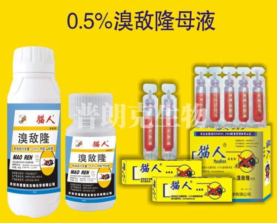 開(kāi)封市普朗克生物化學(xué)有限公司作為溴敵隆老鼠藥廠(chǎng)家,專(zhuān)業(yè)批發(fā)溴敵隆老鼠藥二十余年。溴敵隆老鼠藥是一種高&效低毒的老鼠藥,屬于第二代抗凝血老鼠藥,老鼠吃過(guò)溴敵隆老鼠藥后,3-5天才會(huì )有所反應,所以不會(huì )引起老鼠種群的恐慌,所以可以很好的滅鼠。而且溴敵隆老鼠藥對人畜無(wú)害。
